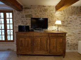 Le gîte se compose d'un vaste séjour-cuisine avec un coin salon et cheminée (70 m²) et des toilettes.